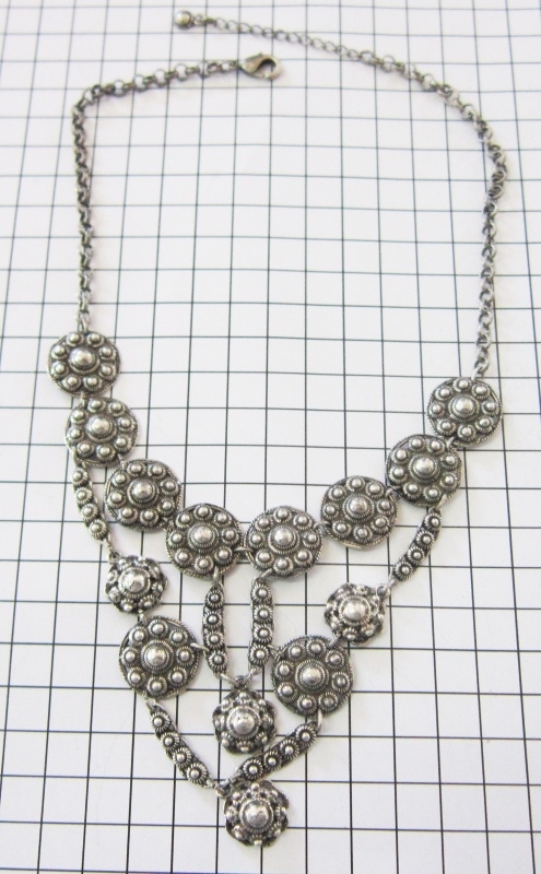 Zwaar verzilverd,met verlengkettinkje, geschikt voor bij galajurk en andere feestelijke gelegenheden.