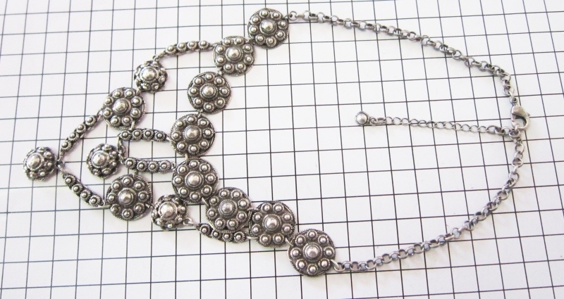 OverzichtZwaar verzilverd,met verlengkettinkje, geschikt voor bij galajurk en andere feestelijke gelegenheden.