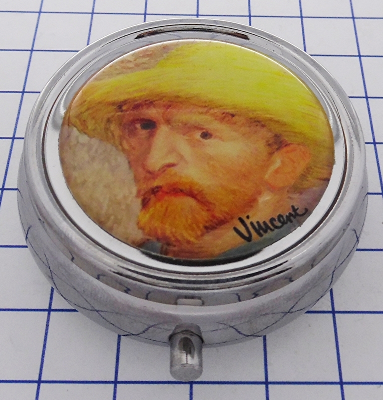 PIL408 pillendoosje met spiegel zelfportret hoed Vincent van Gogh