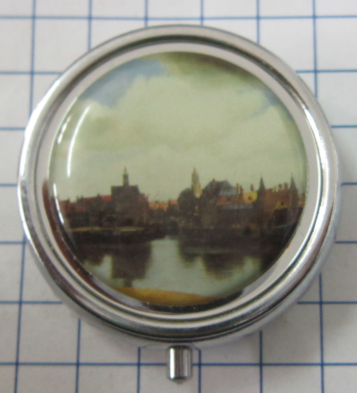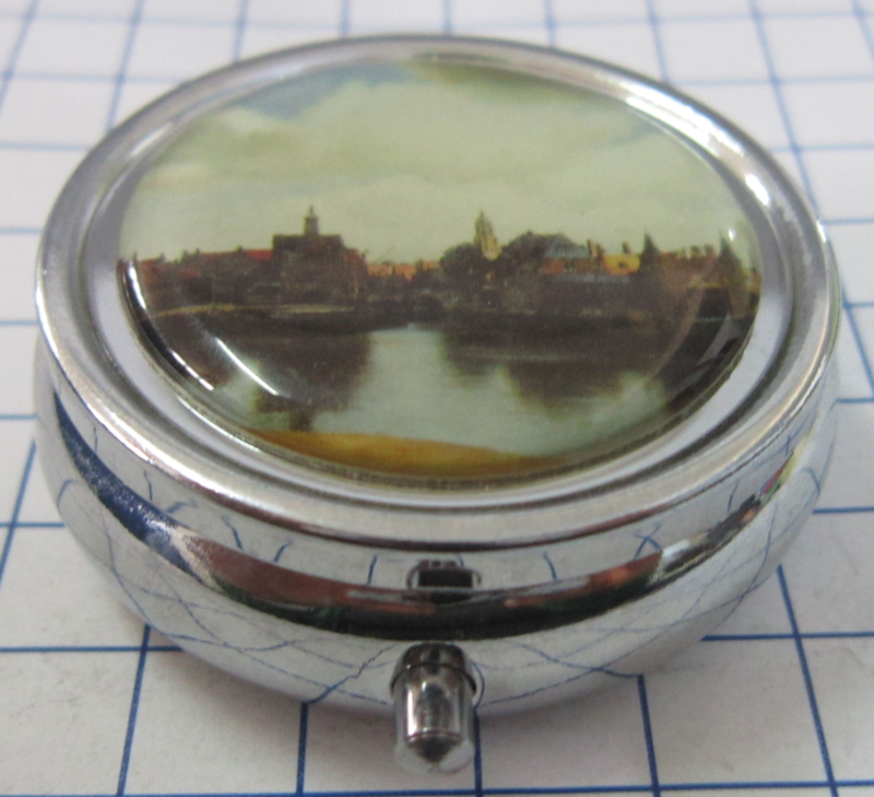 PIL302 pillendoosje met spiegeltje, gezicht op Delft van Johannes Vermeer
