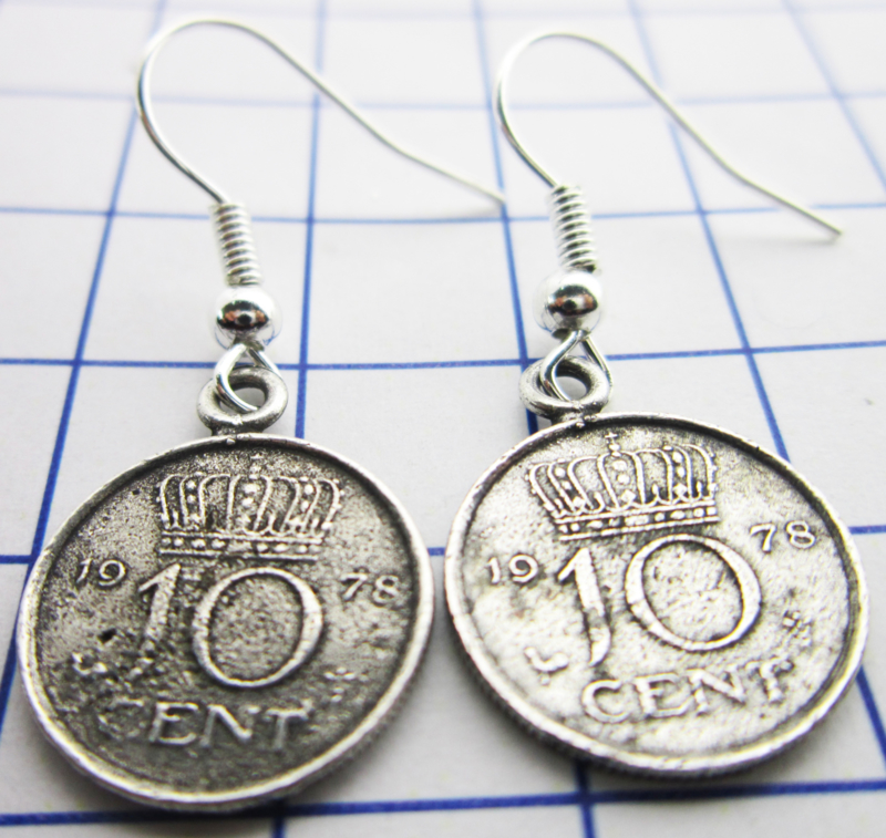 MOOR027 oorhangers verzilverd dubbeltje/10 CENT 1978