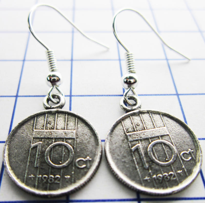 MOOR030 oorhangers verzilverd dubbeltje/10 CENT 1982