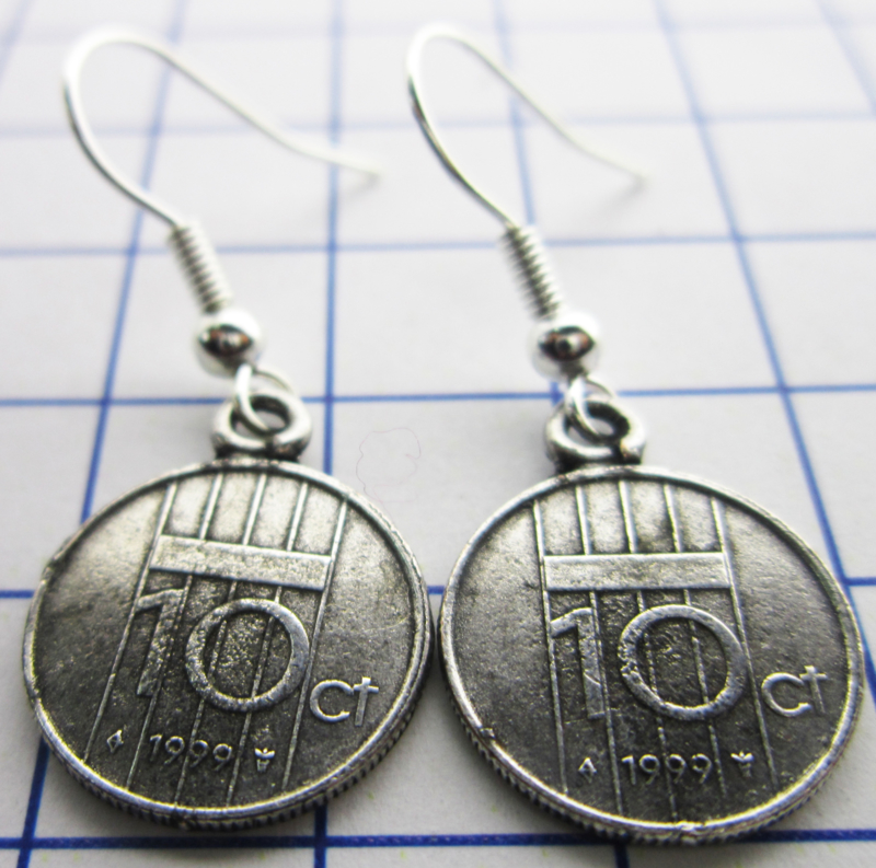 MOOR046 oorhangers verzilverd dubbeltje/10 CENT 1999
